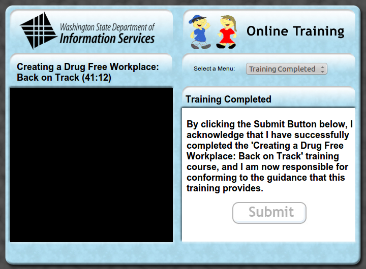 On-demand video for agency-wide mandatory training with back-end integration logging user participation and completion.