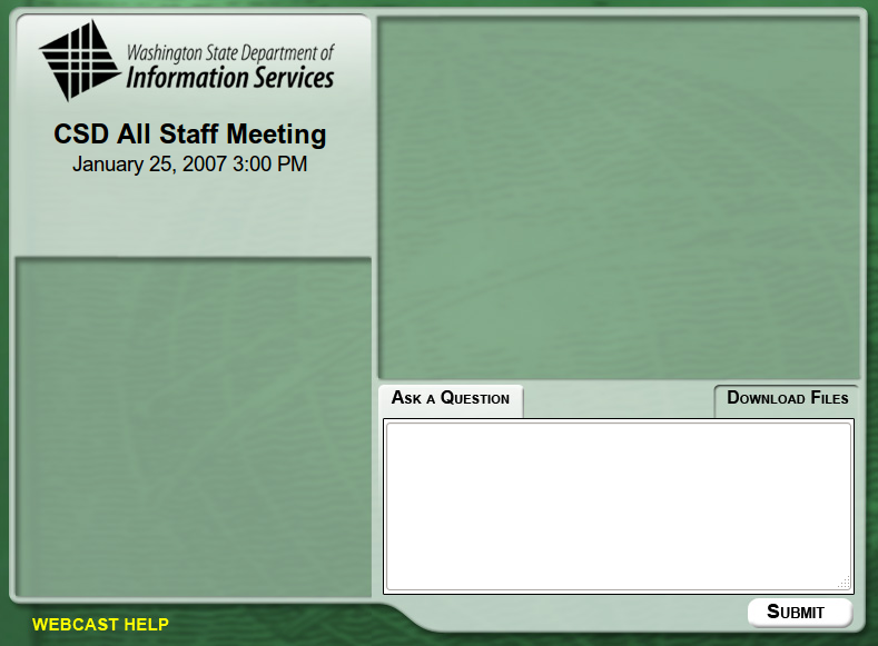 A live webcast interface based on customer's existing web site look-and-feel.