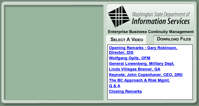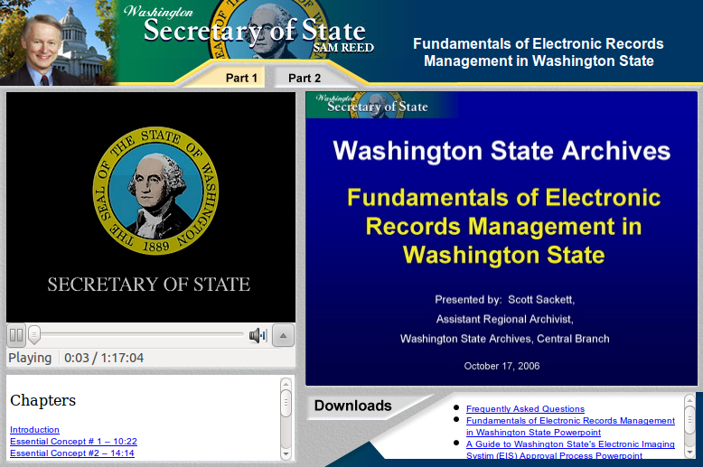 On-demand video of a recorded meeting, broken down into chapters and allowing for download of files related to the program.