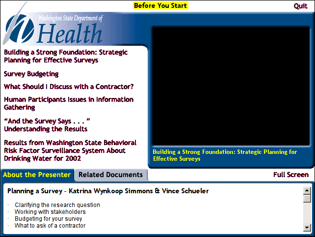 On-demand interface featuring chaptering and access to materials related to the program, distributed on CD-ROM.