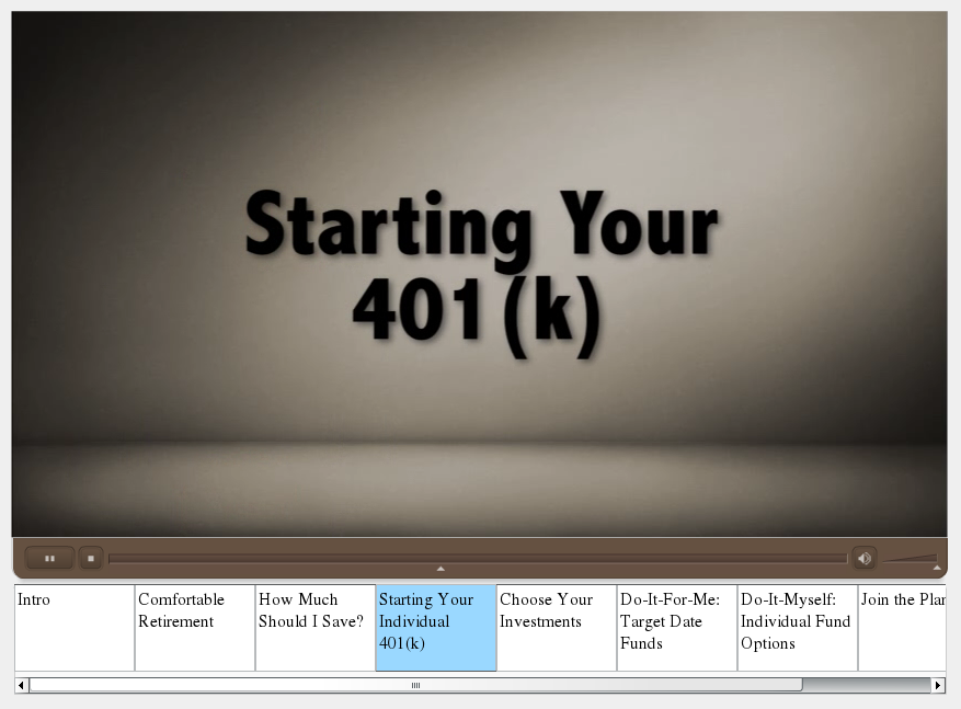 Created a Flash video player with custom functionality including chaptering of video content, a menu allowing users to jump directly to a specific subject in the video, and dynamic buttons within the video content, allowing users immediately access the material and forms being discussed in the video. Implemented this solution into a proprietary content delivery system leveraging user access control and streaming video from a custom streaming media server.